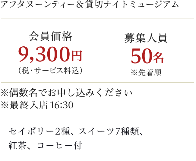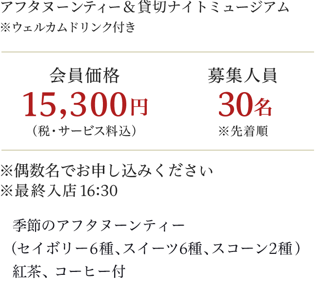 ※アフタヌーンティー会場からアートアクアリウム美術館GINZAまでは、ご自身にてご移動をお願いいたします。また、その際の交通費は含まれておりません。 ※貸切アートアクアリウム入場券をお申込みいただいた方は、アートアクアリウム美術館GINZA(銀座三越 新館9階)へ直接お越しください。